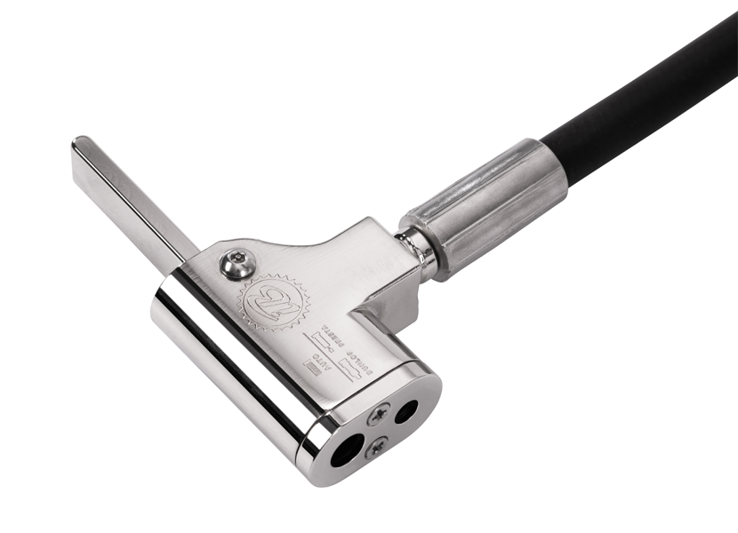 The AISIPRO HEAD™ is compatible with a steel-braided hydraulic hose that is cut-resistant and protects against theft and vandalism. Professional crimping ensures aesthetics and consistent quality. The adapter is compatible with all types of bicycle valves – Presta, Schrader, and Dunlop – without the need for adapters, and the ergonomic shape facilitates quick and intuitive connection to bicycle valves.