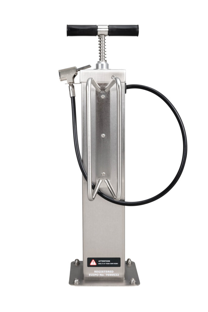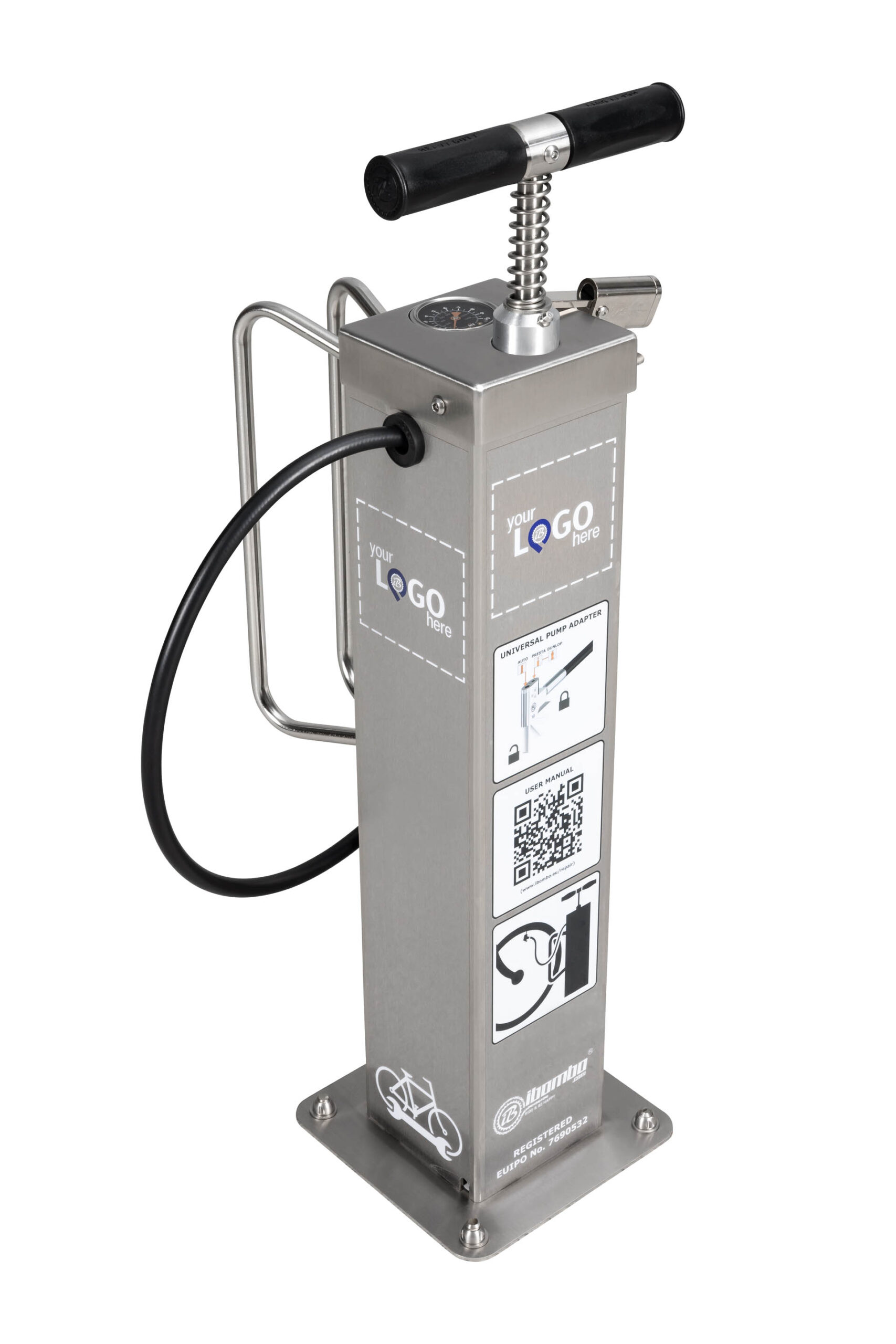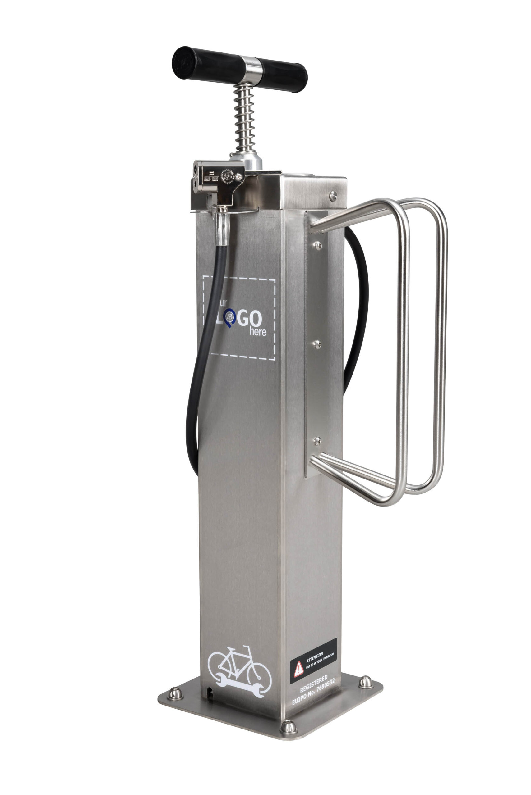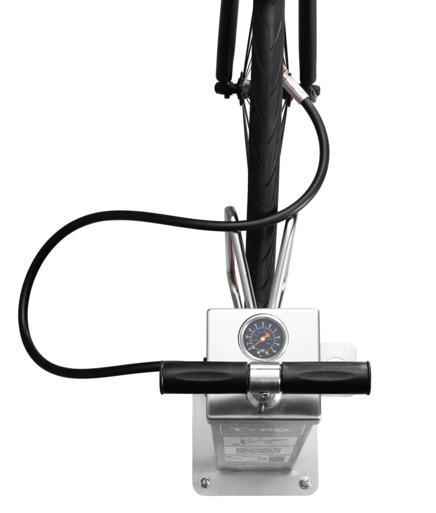 IBOMBO PRS – SV1 public bike pump is adapted for use in public spaces. The advantage of this model is its small size, which allows it to be mounted almost anywhere. The construction of this model does not allow the bike to be hung on the grip.