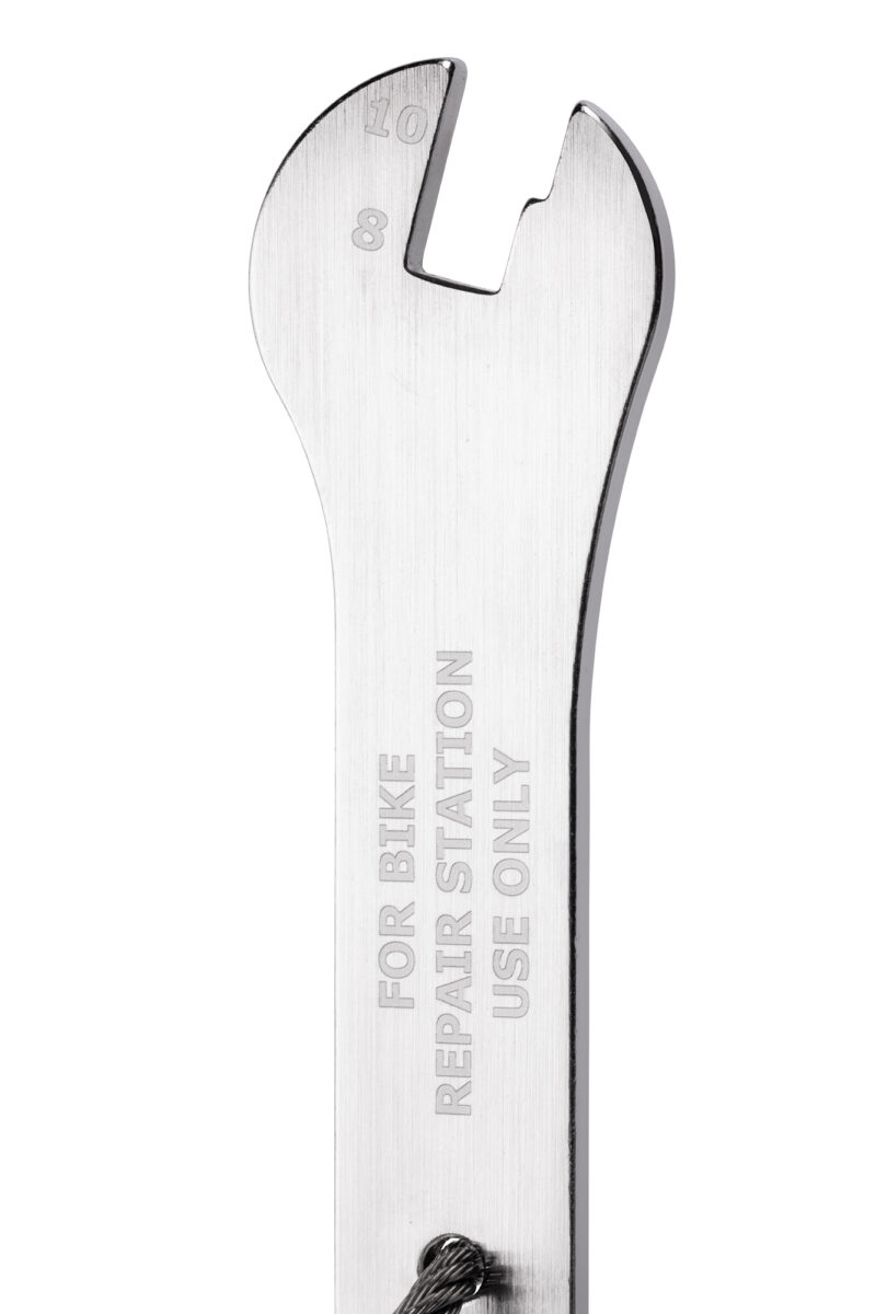 Our years of experience in designing and servicing stations have enabled us to create a custom set of tools for intensive public use. The design process also focused on improving their functionality and ergonomics — we refined the operation of the tools, which are mounted on stainless steel AISI 316 cables with rubber coatings that prevent tangling and frame damage.