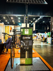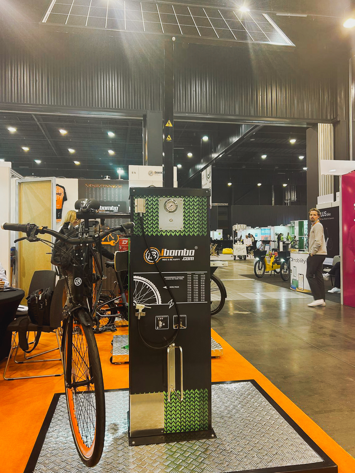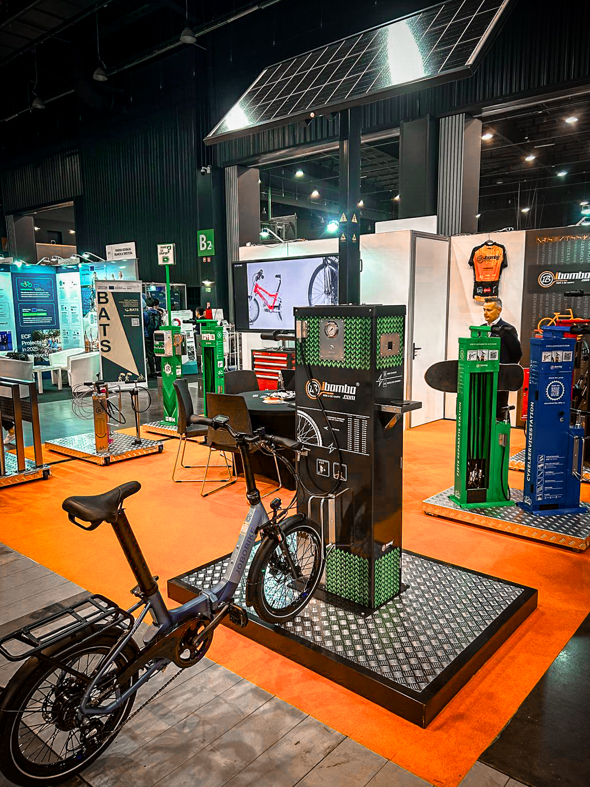 The IBOMBO PRS-SUNO is a self-service bicycle repair station powered by solar energy, offering complete energy independence (off-grid) thanks to a 190 W solar panel and a 45 Ah battery. It allows device charging via USB and inductive charging, while LED lighting with a motion and dusk sensor ensures convenient use at any time of day or night.